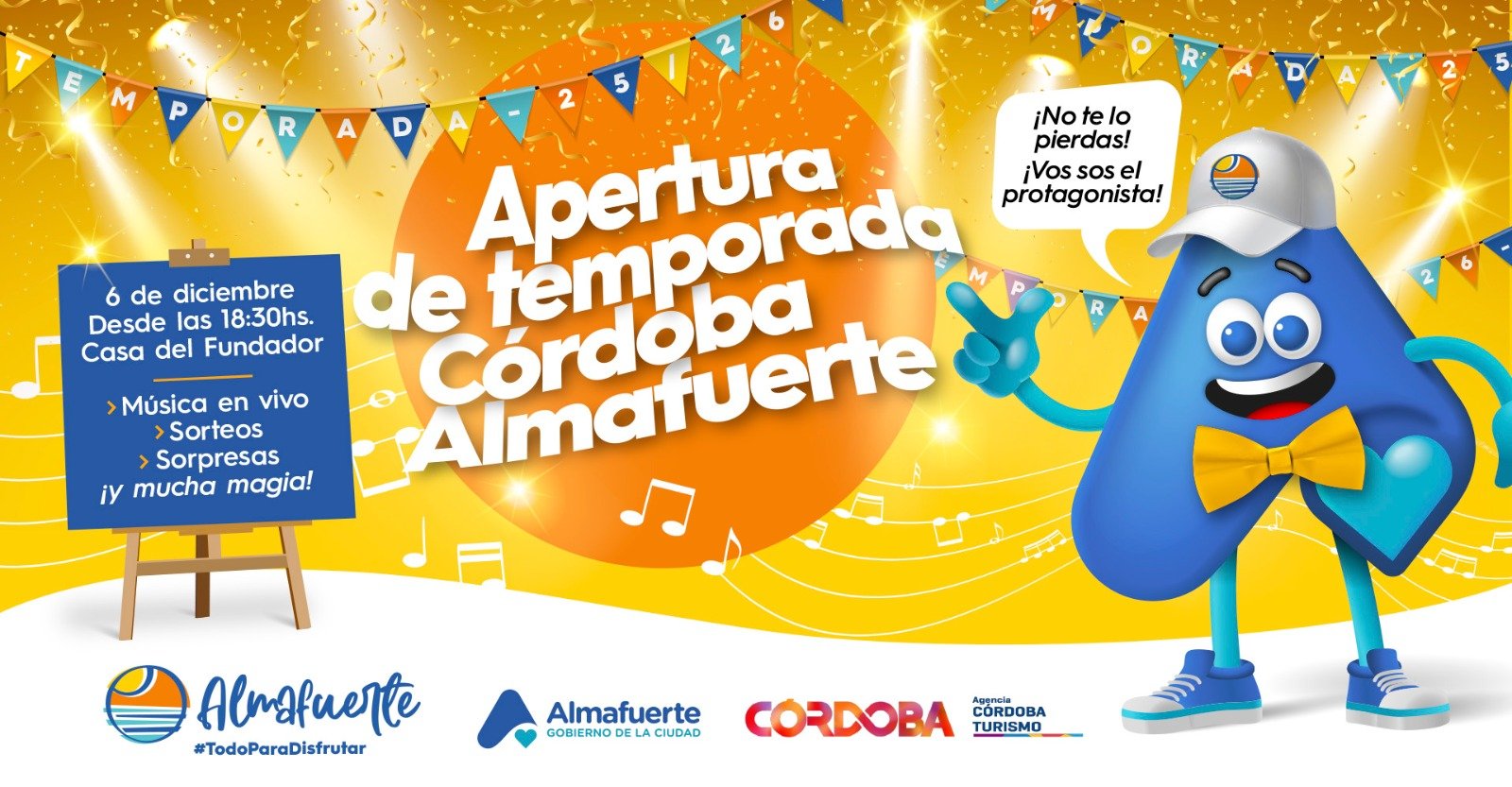 Te esperamos desde las 18:30 hs en la Casa del Fundador, frente al Lago Piedras Moras, para compartir un atardecer especial. Será una buena oportunidad para disfrutar del paisaje, vivir un sunset distinto y acompañar el inicio oficial de la temporada junto a la Provincia de Córdoba. Durante la jornada habrá: Música en vivo, Sorteos, Sorpresas, Invitados especiales. La apertura se realiza en conjunto con el Gobierno de Córdoba y la Agencia Córdoba Turismo, reafirmando el crecimiento de Almafuerte como destino provincial. Agendá la fecha y sumate a este comienzo de temporada con todo para disfrutar.